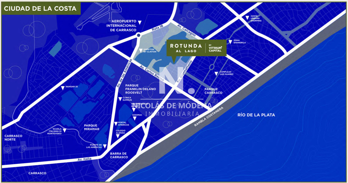 Rotunda al Lago: es un proyecto de cuatro torres ubicado en Ciudad de la Costa, sobre Presidente Kennedy entre Glicina y Crisantemo, frente al Lago Calcagno.
