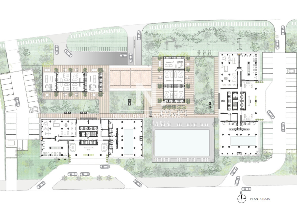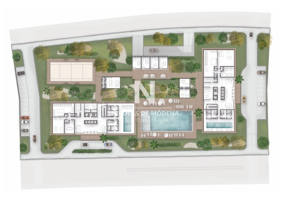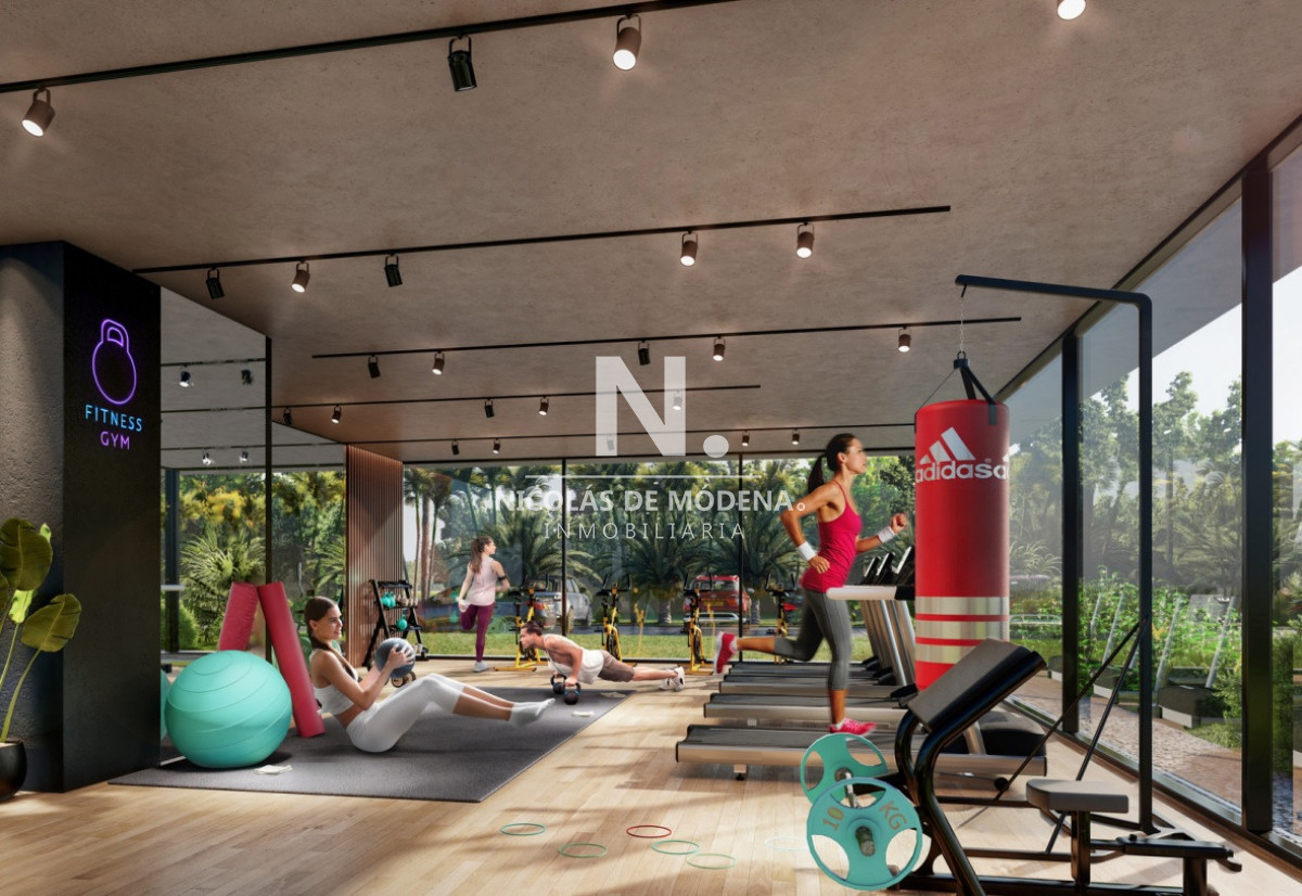 Donde contarán con servicios individuales en cada torre, como por ejemplo piscina interior climatizada, gimnasio, espacio de cowork, saunas, recepción 24 hs; los servicios exteriores de piscina, 11 barbacoas y cancha de usos múltiples será compartida